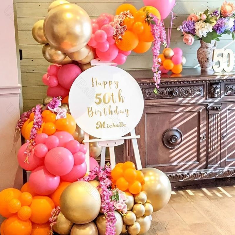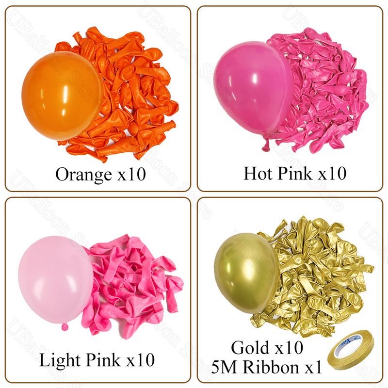 40Pcs Pink Orange Balloons Metal Gold Orange Light Hot Pink Latex Balloons for Bridal Baby Shower Birthday Wedding Party Decor