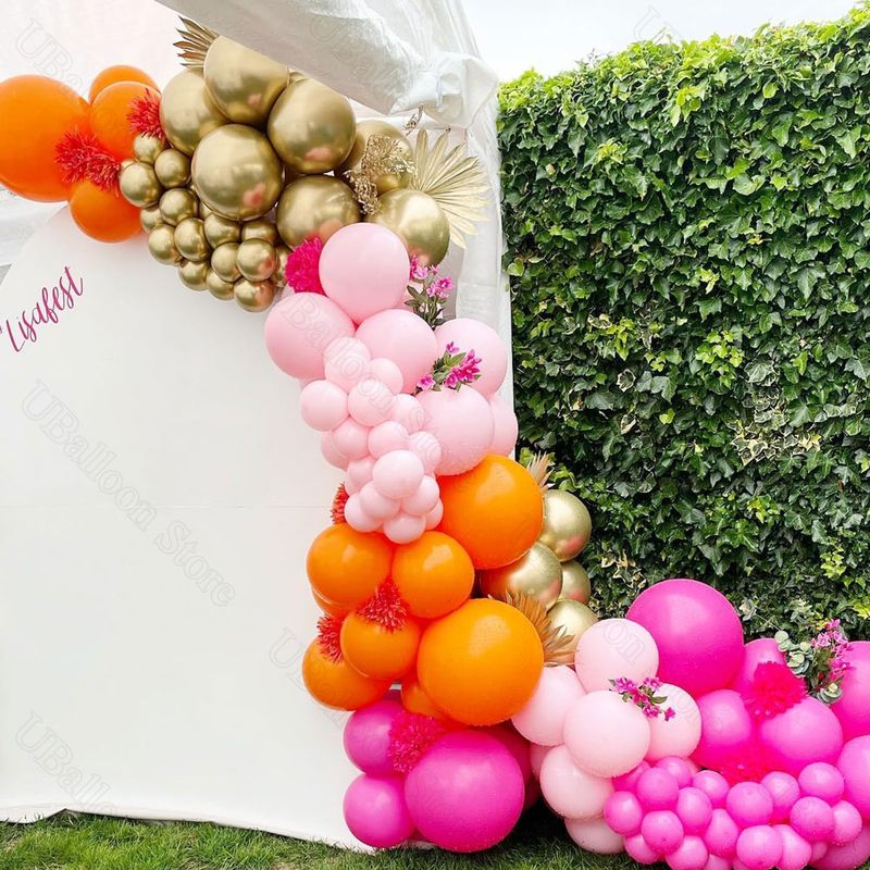 40Pcs Pink Orange Balloons Metal Gold Orange Light Hot Pink Latex Balloons for Bridal Baby Shower Birthday Wedding Party Decor