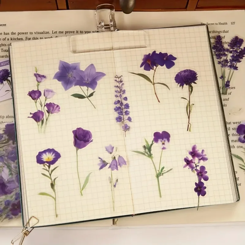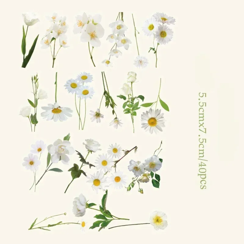 40pcs/set Natural Flower Sticker for Scrapbooking,Self-Adhesive Scrapbooking Sticker Supplies Journal for Card Making Letter DIY