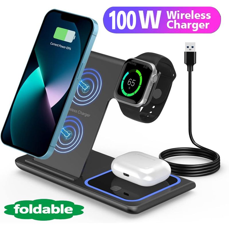 3 IN 1 WIRELESS CHARGER STAND: wireless charging station can charge your for apple iwatch 2/3/4/5/6/SE/7/8/Ultra