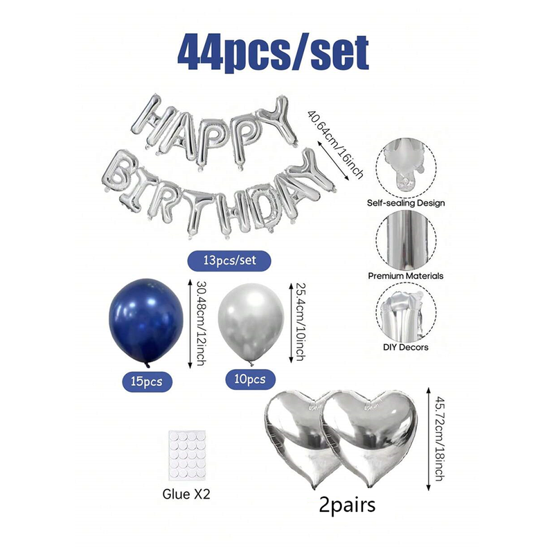 42~45pcs/Set 16" Rose Gold/Blue/Pink "Happy Birthday" Banner Foil Balloon Set,For Happy Birthday English Letter, Party Scene