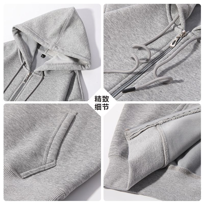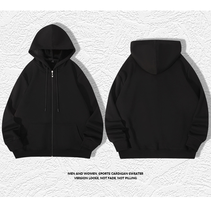 420g European And American Plus Size Zipper Hooded Sweater Men Black L
