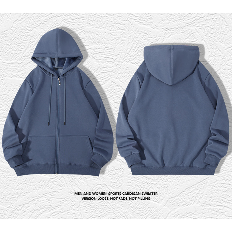 420g European And American Plus Size Zipper Hooded Sweater Men Haze Blue 6XL