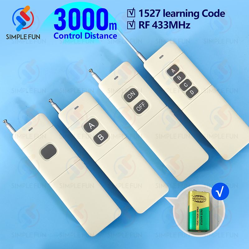 433Mhz 3000 meters Long Distance Universal Transmitter High Power 1/2/4 CH RF Remote Control 1527 Learning Code Remote Control