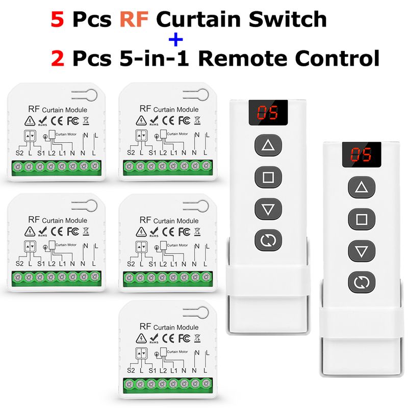 433MHz Curtain Blinds Switch 110V 220V 5Channels Wireless Remote Control Transmit 50m for Roller Shutter,Garage Door,AC Motor