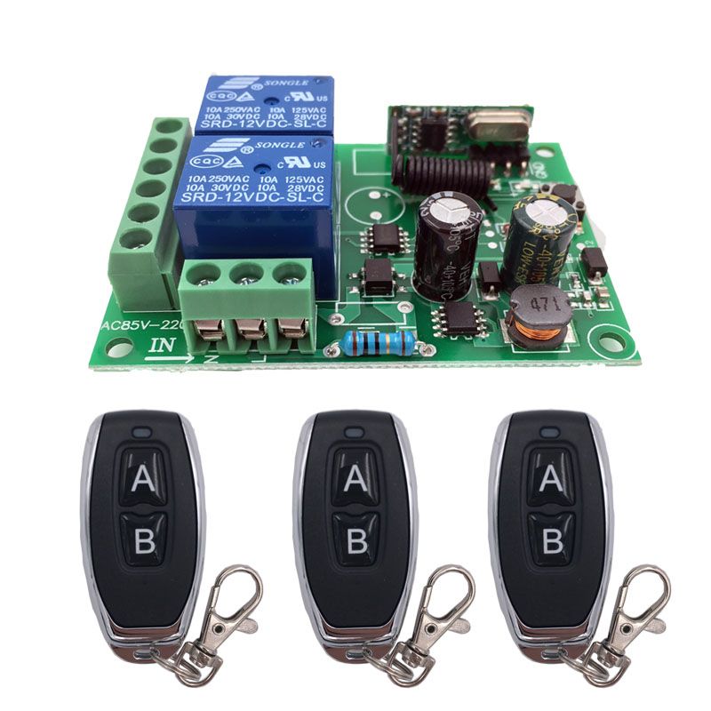 433MHz Universal Wireless Remote Control AC220V 2CH rf Relay Receiver and Transmitter for Universal Garage door and gate Control