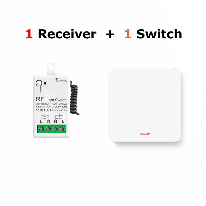433MHz Wireless AC Light Switch 220V Receiver and 1/2/3Key 86 Wireless Push Button Switch Transmit 50m for LED/Home Improvement