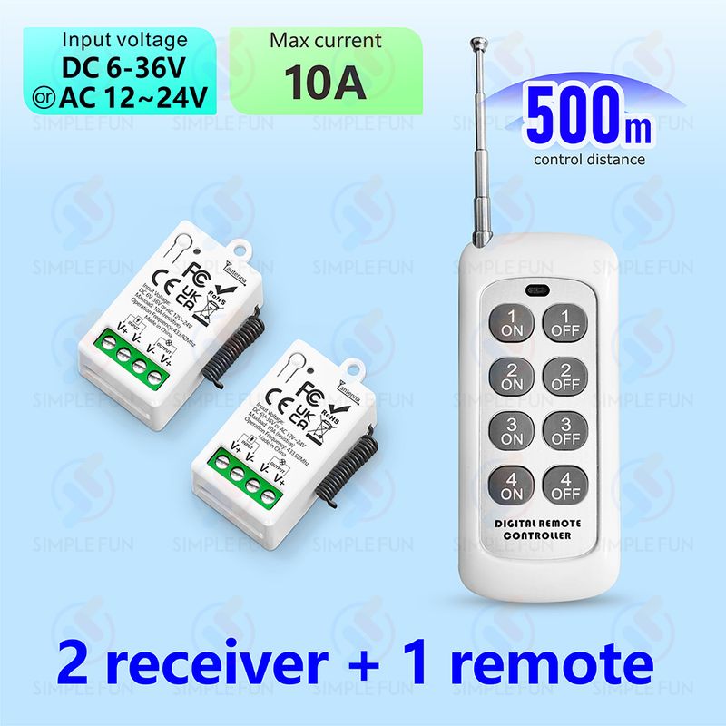 433Mhz Wireless Remote Control Light Switch DC 6V 12V 24V 30V 36V 10A Relay Receiver 500m Range,for LED Pumps Fan Magnetic Lock