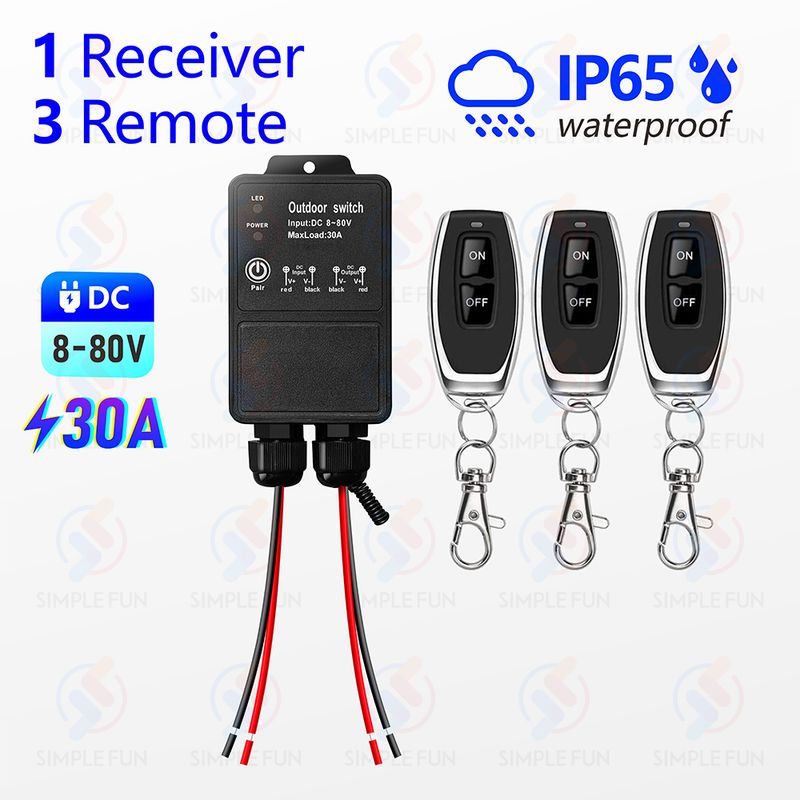 433Mhz Wireless Remote Control Switch DC 12V 24V 36V 48V 72V Outdoor Waterproof 30A High Power Relay Module 50m Control Range for LED Pump Fan...