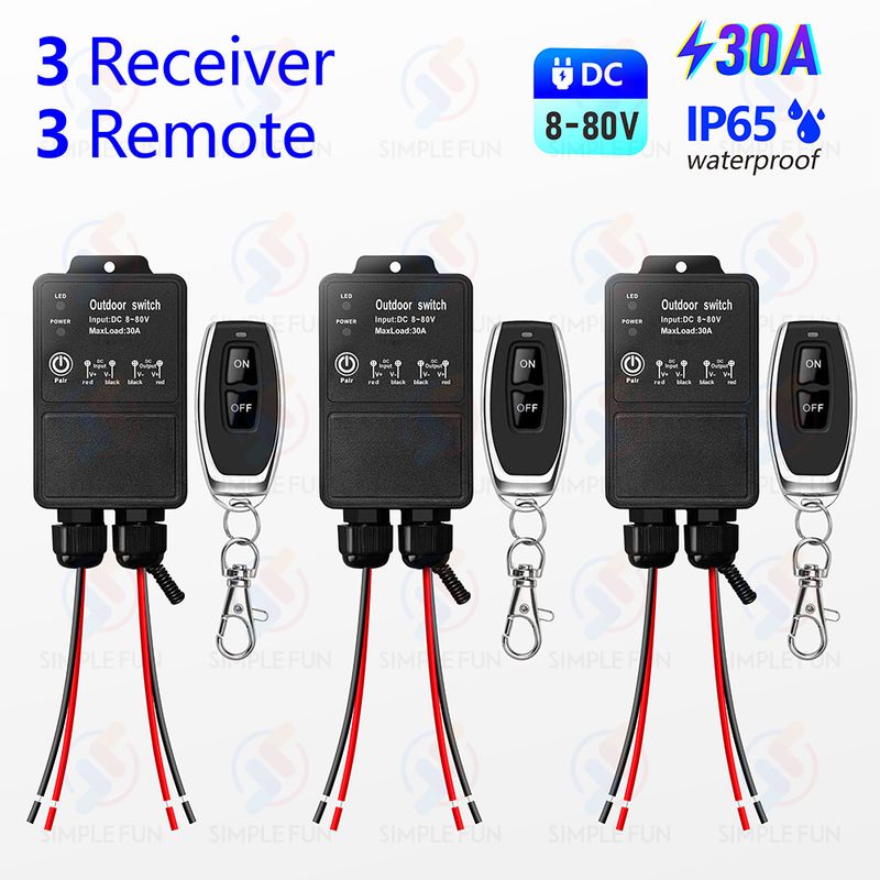 433Mhz Wireless Remote Control Switch DC 12V 24V 36V 48V 72V Outdoor Waterproof 30A High Power Relay Module 50m Control Range for LED Pump Fan...