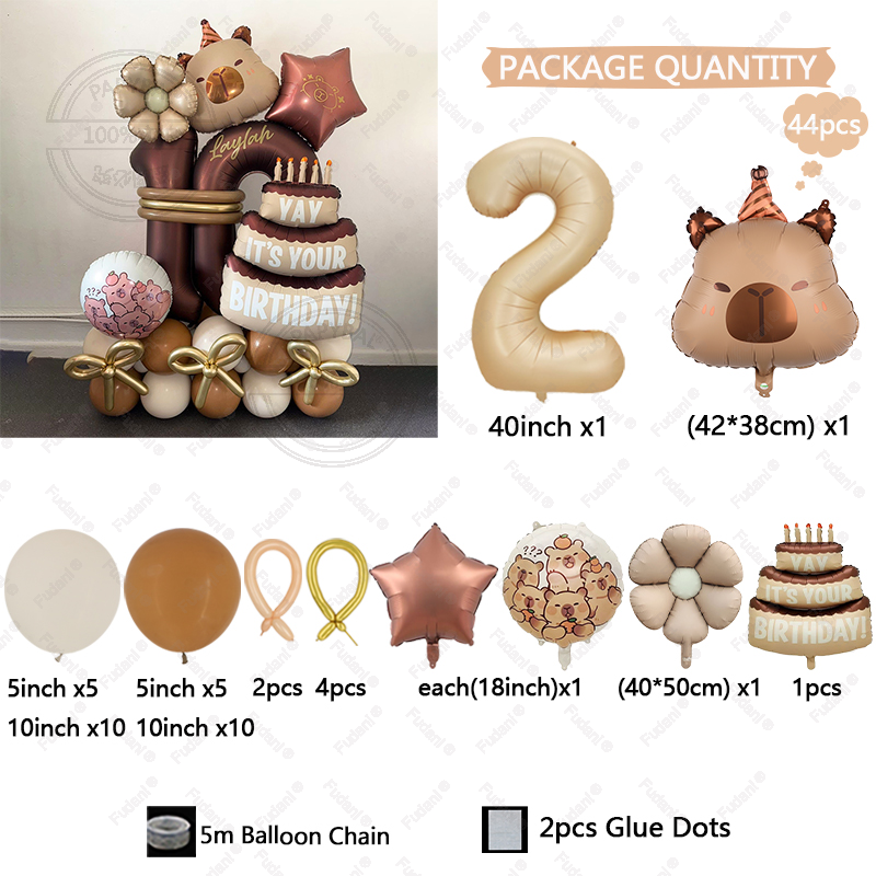 44pcs Cartoon Animal Capybara Theme Birthday Cake Foil Balloon Children Birthday Party Caramel Number Balloon Baby Shower Gifts
