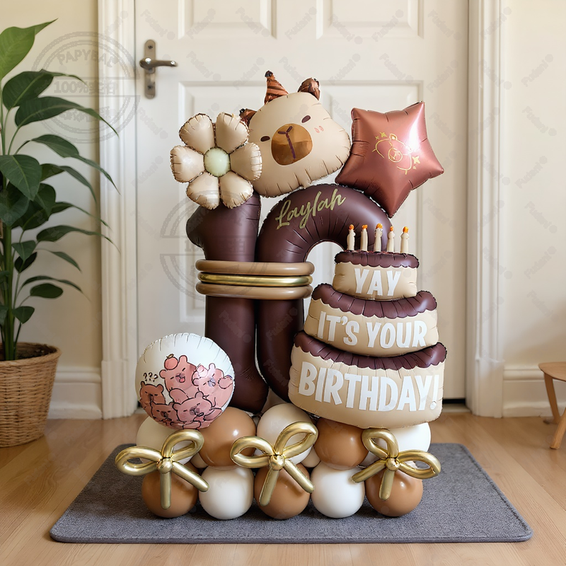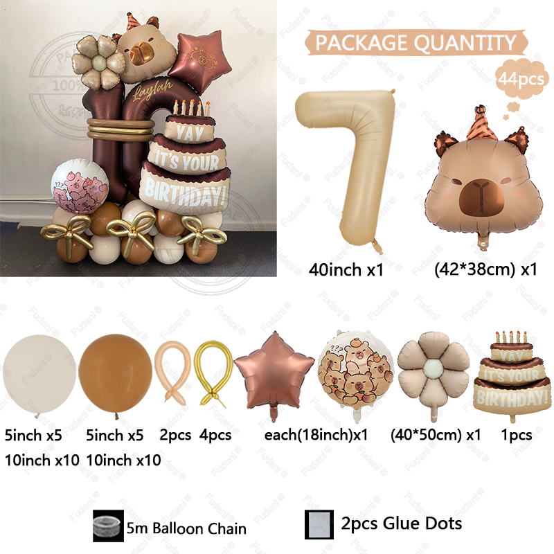 44pcs Cartoon Animal Capybara Theme Birthday Cake Foil Balloon Children Birthday Party Caramel Number Balloon Baby Shower Gifts