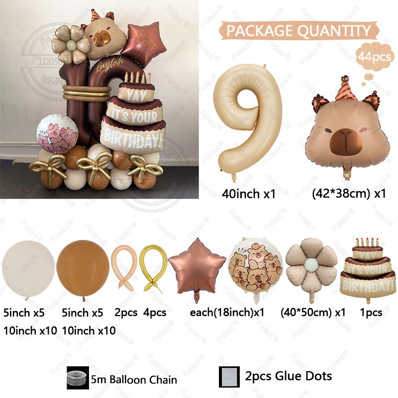 44pcs Cartoon Animal Capybara Theme Birthday Cake Foil Balloon Children Birthday Party Caramel Number Balloon Baby Shower Gifts