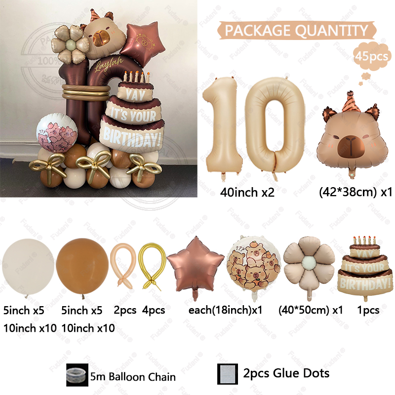 44pcs Cartoon Animal Capybara Theme Birthday Cake Foil Balloon Children Birthday Party Caramel Number Balloon Baby Shower Gifts