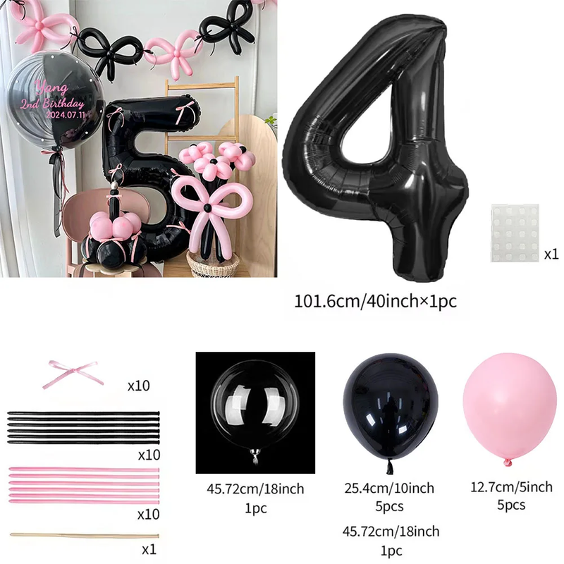 45 Pieces Pink Latex Balloon Black Number Balloon Set for Girls Pink Butterfly Birthday Party, Anniversary Decoration (0-9)
