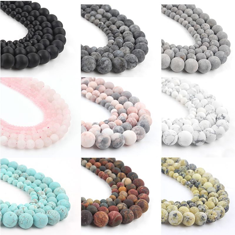 45 Style Natural Stone Beads Matte Dull Polish Agata Picasso Howlite Quartzs Beads for Jewelry Making DIY Bracelet Minerals Bead