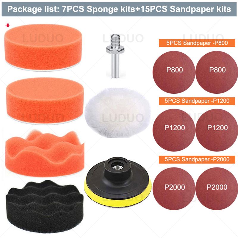 45/30/15PCS 3 Inch Sanding Discs Polishing Pad Buffing Pad Waxing Sponge Car Lights Renovation Kit Automotive Polish