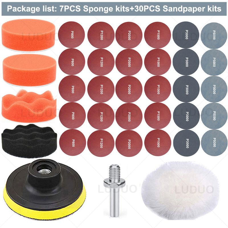 45/30/15PCS 3 Inch Sanding Discs Polishing Pad Buffing Pad Waxing Sponge Car Lights Renovation Kit Automotive Polish
