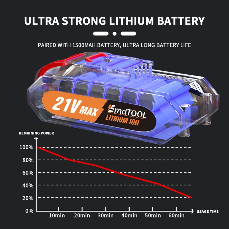 ging cycles.100% Battery provides 1.2 hours working time. The impact driver set comes with a quick charger, it only takes about 1.5Hrs for the Li-ion battery to fully charge, which reduces project delays so you can finish without delay!
