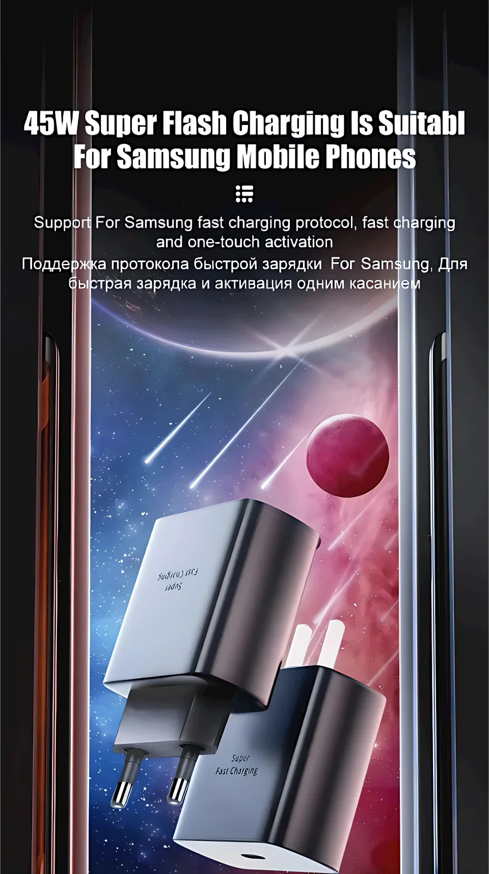 45W PD USB-C Super Fast Charger for Samsung Galaxy S24 Ultra S23 S22 S21 Plus Note10 Z Flip5 Fold3 A55 A35 A54 A34 A53 5A Quick Charging Double Type C Data Cable 1m