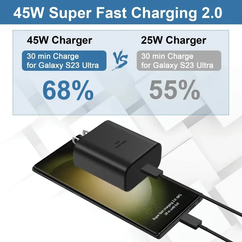 45W PD USB-C Super Fast Charger for Samsung Galaxy S24 Ultra S23 S22 S21 Plus Note10 A54 A34 5A Quick Charging Type C Data Cable