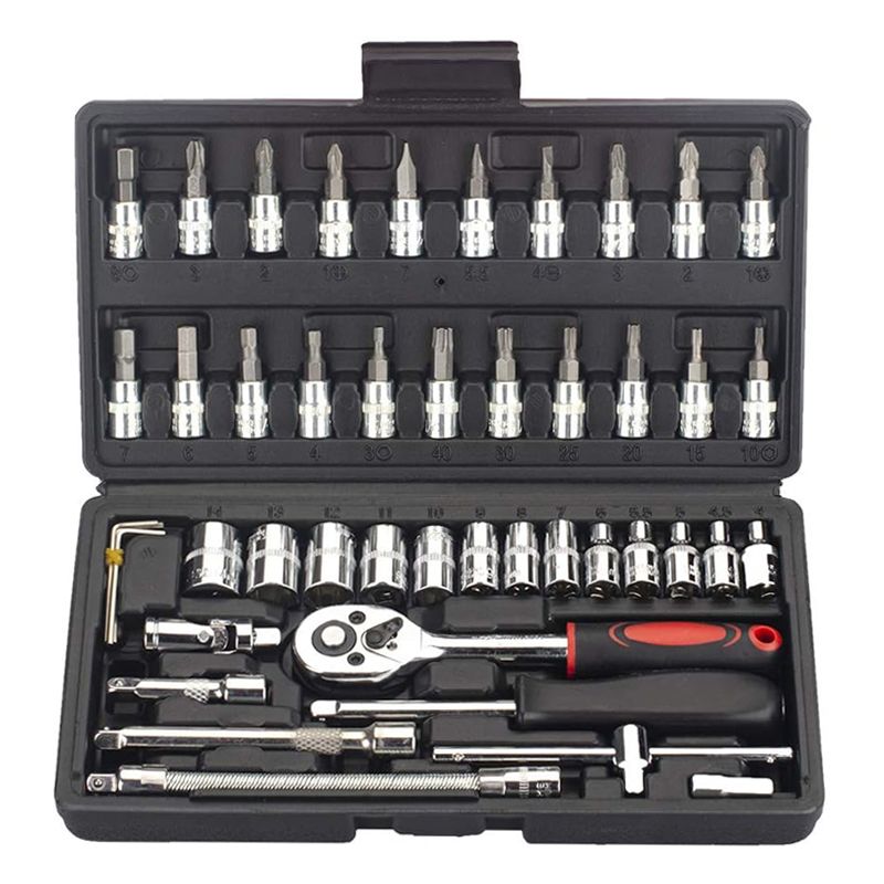 46 Pieces 1/4 Inch Drive Socket Ratchet Wrench Set, With Bit Socket Set, Metric And Extension Bar For Auto Repairing