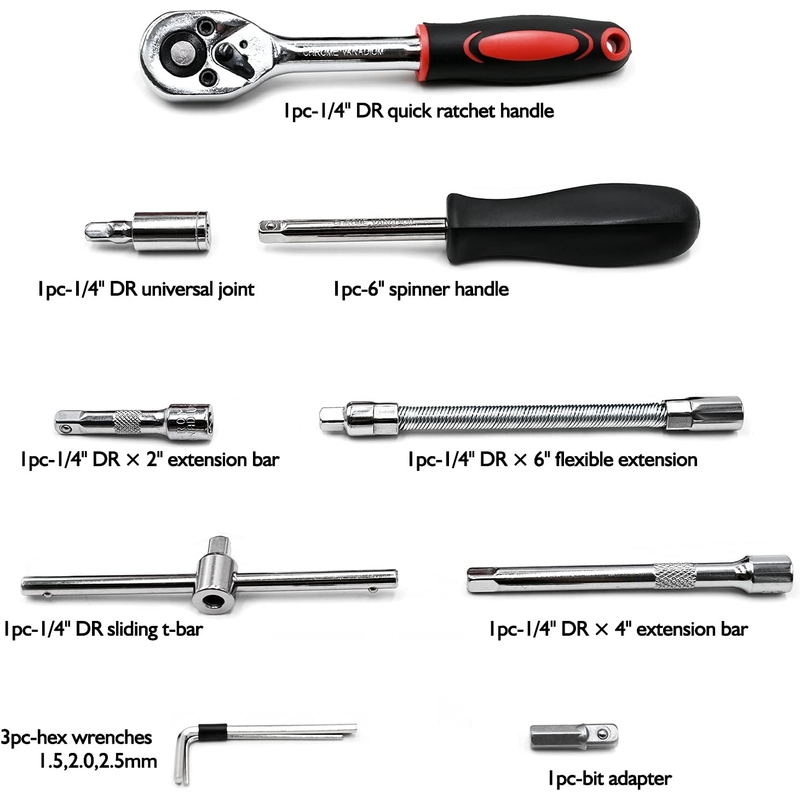 Wide Application: This 1/4” socket tool set is perfect for home improvement, carpentry, construction, auto repair, woodwork, and other DIY projects. Also can be a great gift for men on various occasions like Father's Day, Birthday or Anniversary.