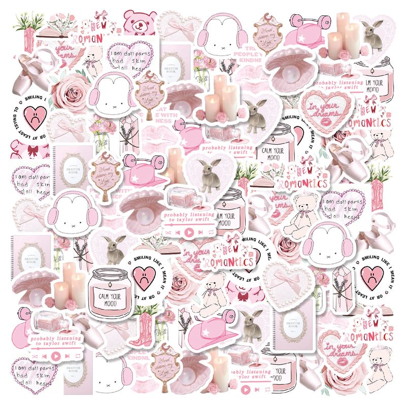 46pcs Bunny, Bear, Perfume Pink Graffiti Stickers Decorated Notebook Water Cup Diary Guitar Student Stationery PVC Decals