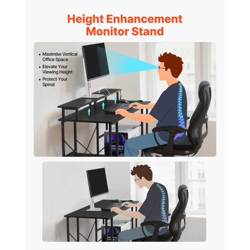 Upgrade Your Workspace: This computer desk has a built in power strip with 4 three prong outlets, 2 USB ports, and 6.5 ft / 2 m power cord for devices, plus a reversible storage shelf you can mount left or right to match your setup