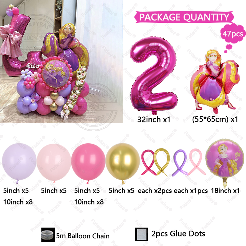47pcs Cartoon Rapunzel Princess Foil Balloon Happy Birthday Party Supplies Decoratio Baby Shower Kid Faovr Tangled Ballon Globos