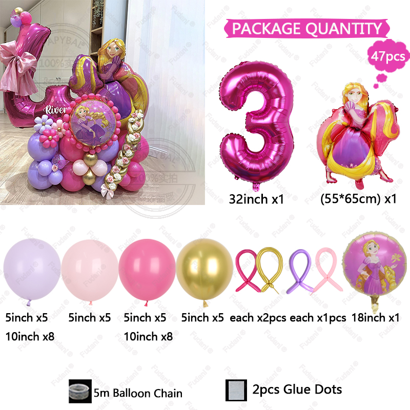 47pcs Cartoon Rapunzel Princess Foil Balloon Happy Birthday Party Supplies Decoratio Baby Shower Kid Faovr Tangled Ballon Globos