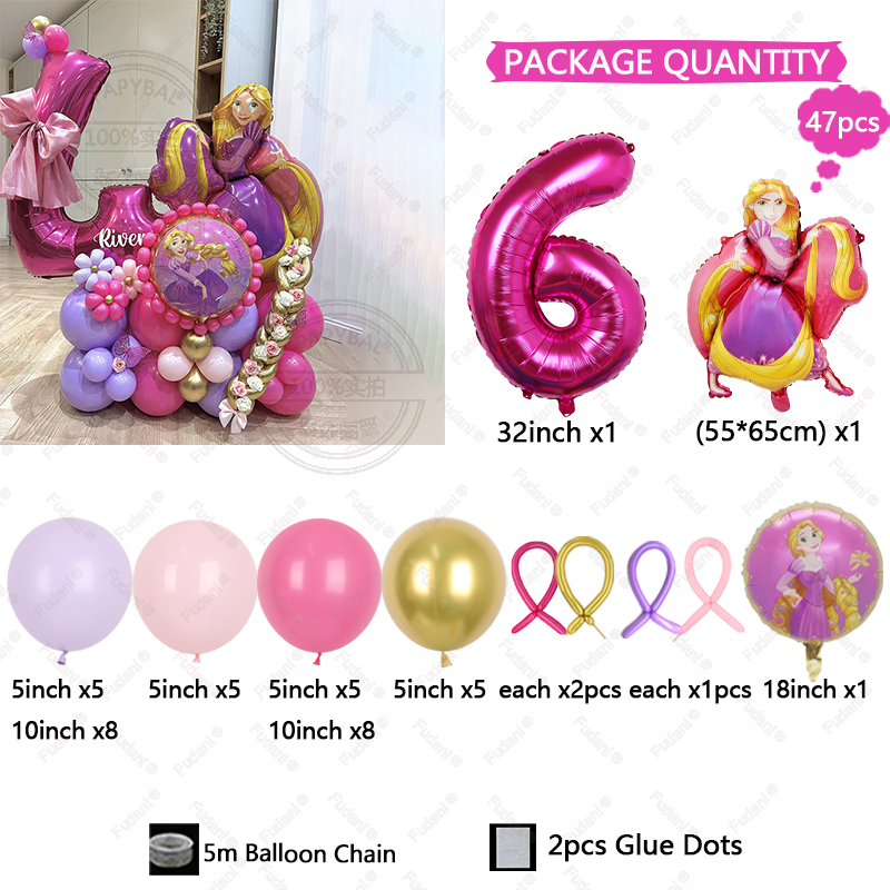47pcs Cartoon Rapunzel Princess Foil Balloon Happy Birthday Party Supplies Decoratio Baby Shower Kid Faovr Tangled Ballon Globos