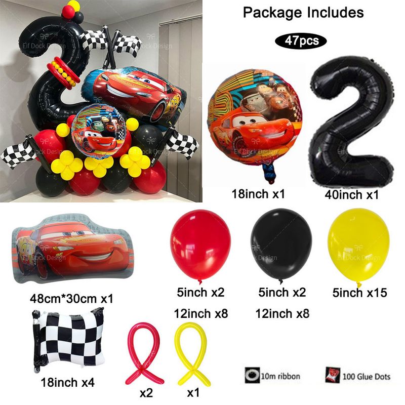 47pcs Lightning McQueen Cars Party Themd Balloon Checkered Flag Black Number Foil Balloon Boys Girls Birthday Party Decorations