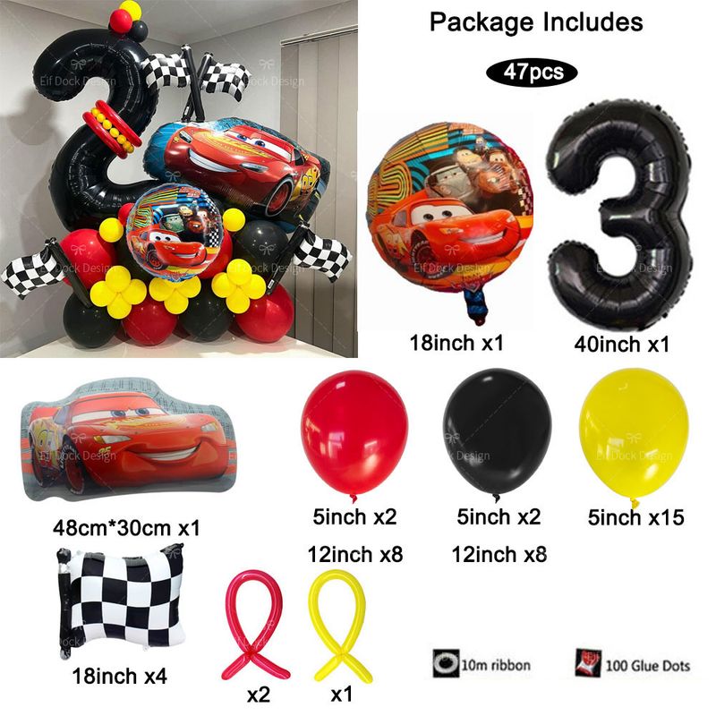 47pcs Lightning McQueen Cars Party Themd Balloon Checkered Flag Black Number Foil Balloon Boys Girls Birthday Party Decorations
