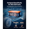 Outstanding Lifespan: It is designed for 48V golf carts; this golf cart lithium battery's compact and integrated design makes it easier to install than bulky lead-acid batteries. Weighing only 80.03 lbs (36.3 kg) boosts your golf cart's speed. With over 4000 cycles, it outlasts traditional lead-acid batteries.