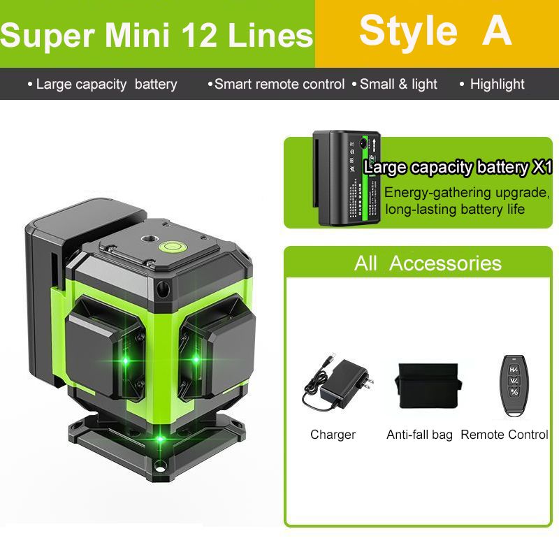 4D 16 Lines Mini Laser Level Self-Leveling Green Line Horizontal Vertical Cross Laser Level with Remote Control