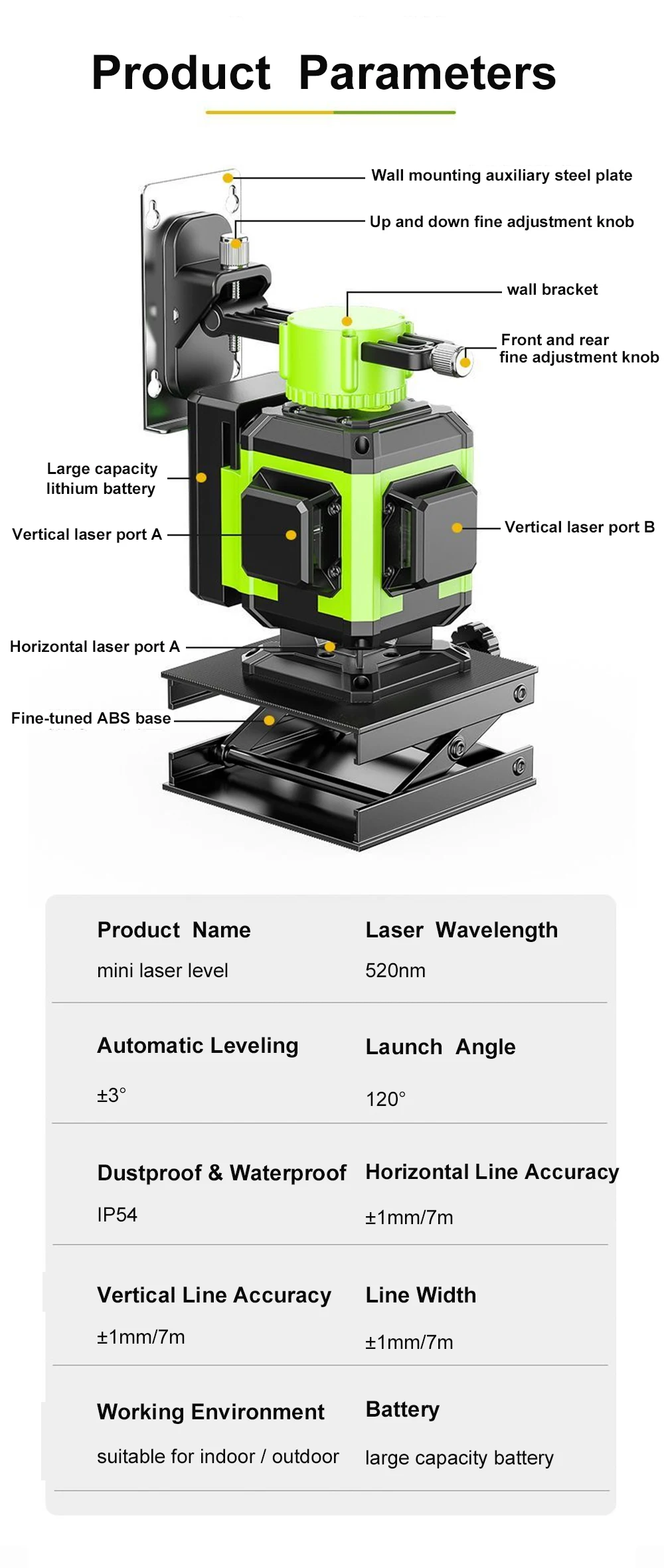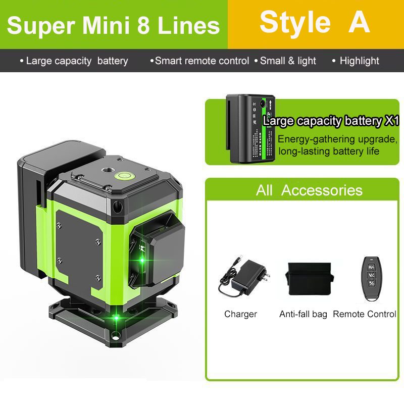4D 16 Lines Mini Laser Level Self-Leveling Green Line Horizontal Vertical Cross Laser Level with Remote Control