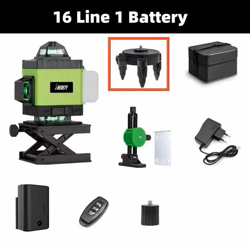 4D 16 Lines Professional 360°Self-leveling Horizontal and Vertical Remote Control Green Line Laser Level 2400mAh Li-Ion Battery