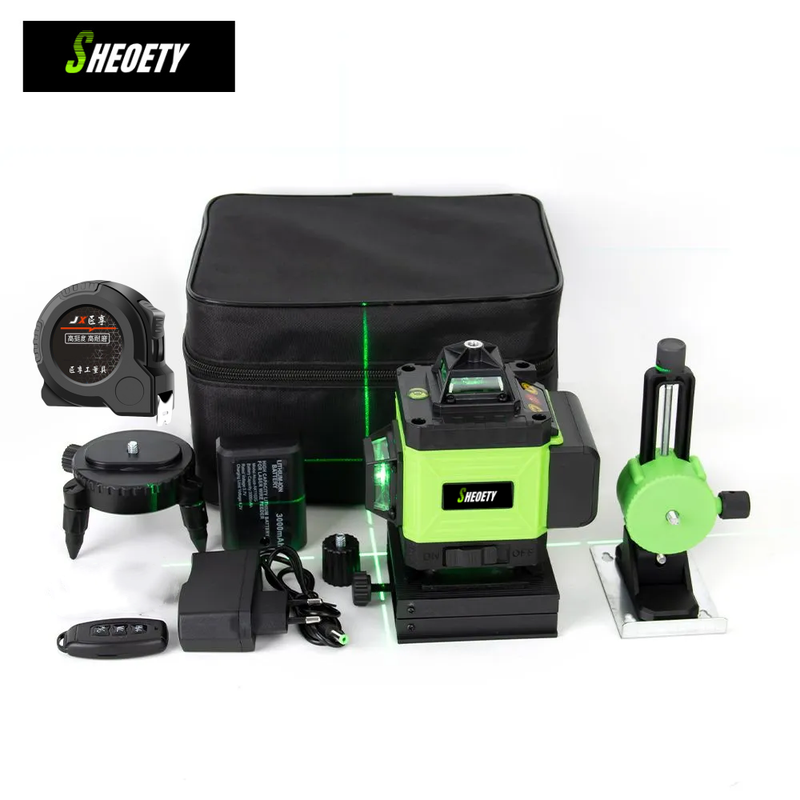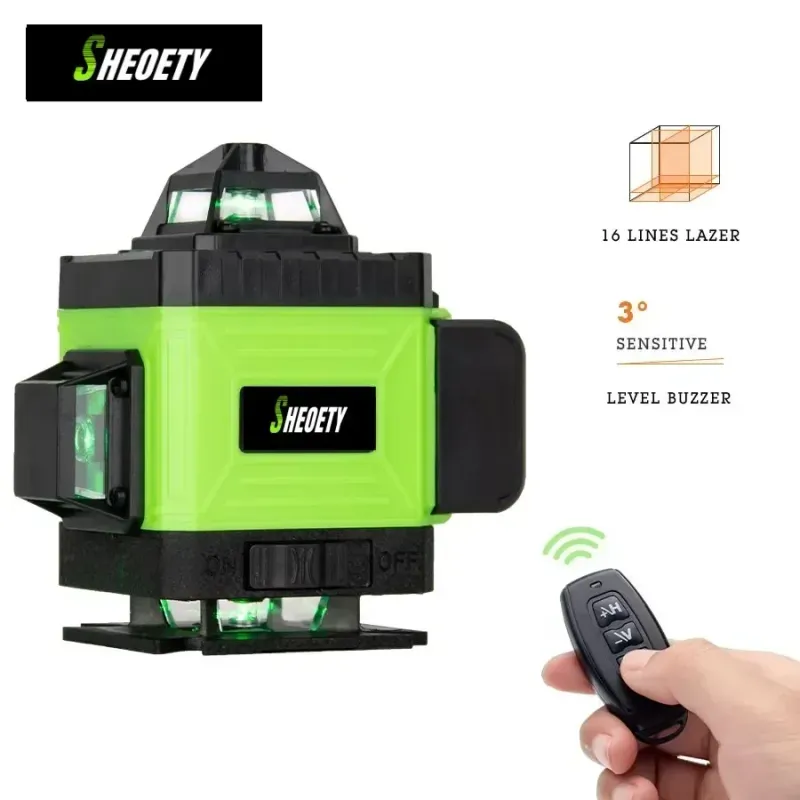 4D 16 Lines Professional 360°Self-leveling Horizontal and Vertical Remote Control Green Line Laser Level 2400mAh Li-Ion Battery