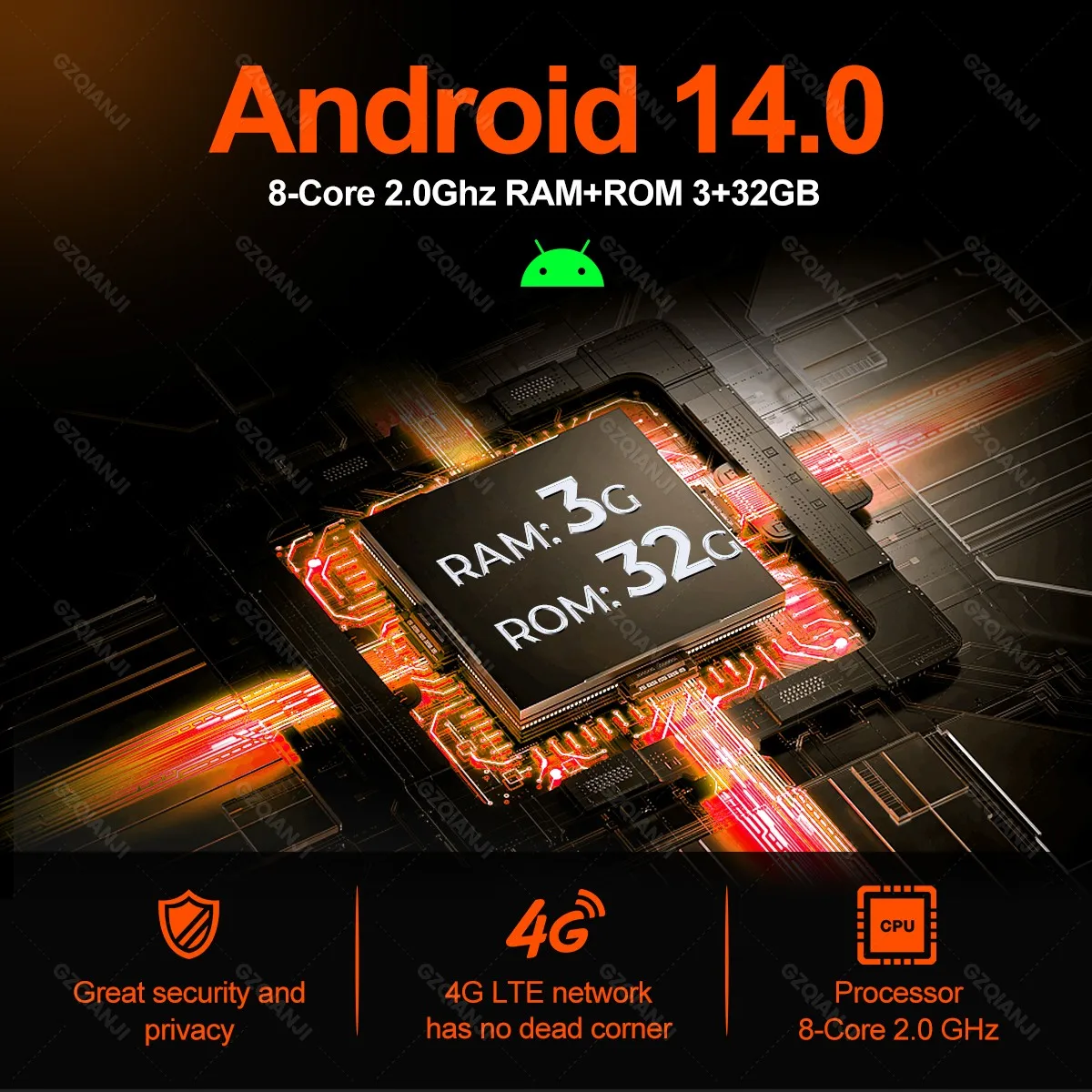Memory: 1GB RAM+8GB ROM /2GB RAM+16GB ROM / 3GB RAM+32GB ROM(Optional)