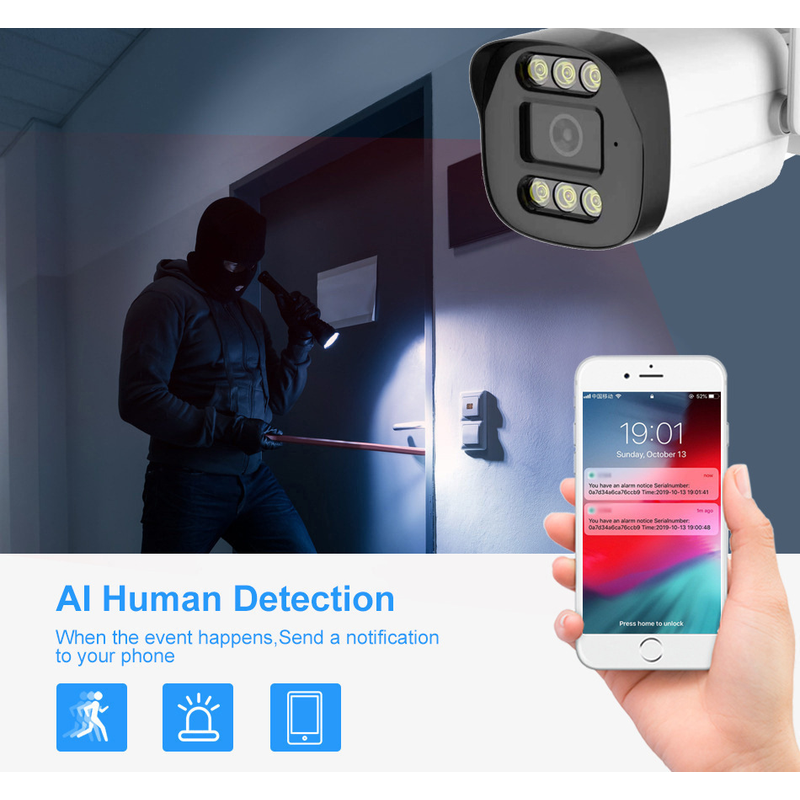 Set up motion detection. When someone moves in front of the camera, the camera will send alarm information to the mobile phone APP.