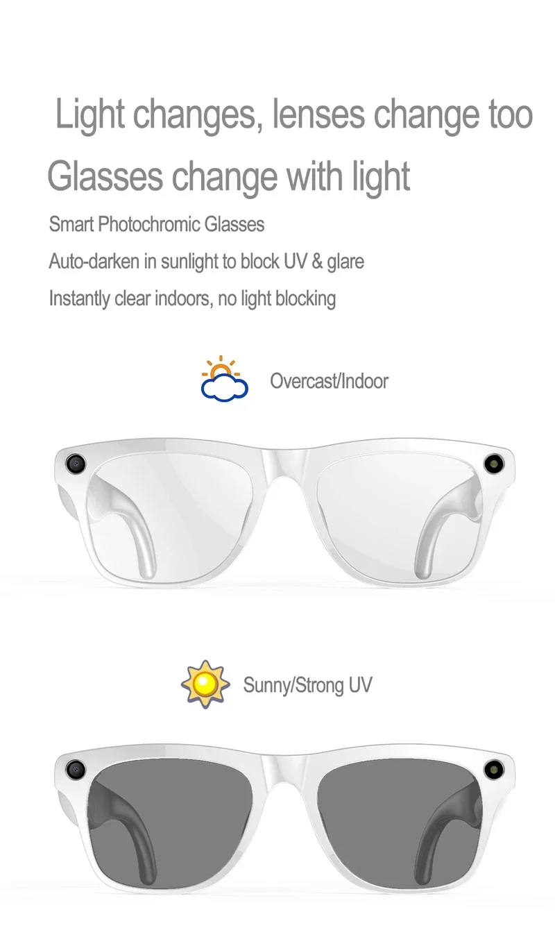 4K HD AI Camera Glasses 800MP Photochromic Multifunctional Smart Glasses Bluetooth Calling Photo Video ChatGPT Music Translation