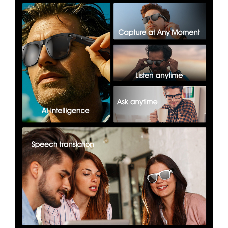Main Features: AI voice assistant/photo taking/video recording/audio recording/music control/calling/alert sounds/indicator lights/translation/object recognition/touchscreen/music playback (music control, local music) etc.