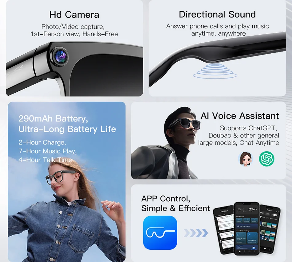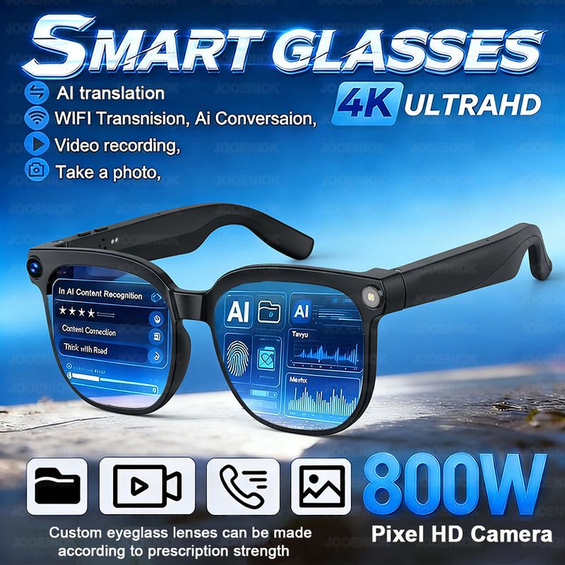 4K HD AI Smart Glasses Chat GPT 800MP Camera Recording WIFI Transnision Bluetooth Call 260Mah Voice Assistant Smart Glasses 2026