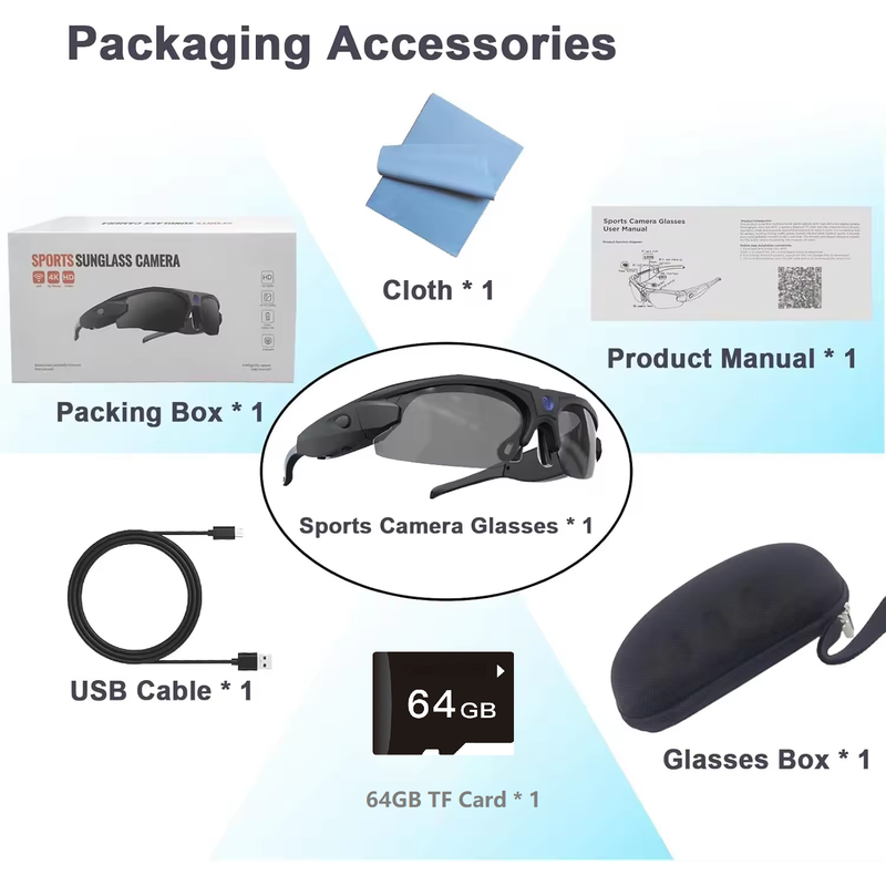 Sunglasses records from POV perspective. Lightweight, comfortable to wear, perfect for mountaineering, camping, cycling,driving, hiking, skateboarding, hunting. Record every wonderful moment in your life.