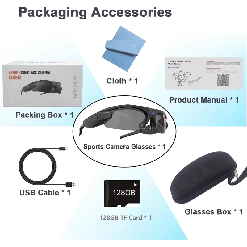 4K HD FPV Smart Glasses WIFI Camera 1080P Video Recording Mini Wireless Bodycam Vlogging POV Action Sports Motorcycle Cycling