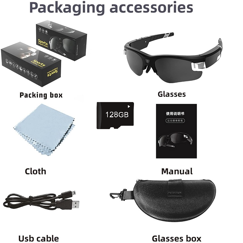 Sunglasses records from POV perspective. Lightweight, comfortable to wear, perfect for mountaineering, camping, cycling,driving, hiking, skateboarding, hunting. Record every wonderful moment in your life.