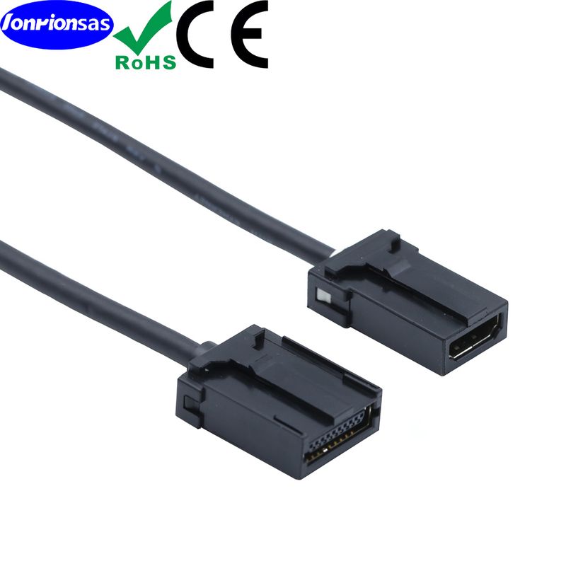 Type E HDMIE Type is mainly used for audio and video transmission in car entertainment systems. Due to the instability of the Internal environment of the vehicle, HDMI EType is designed with the characteristics of seismic resistance, moisture-proof, high strength resistance, and wide temperature tolerance. In terms of physical structure, the use of mechanical locking design can ensure contact reliability.