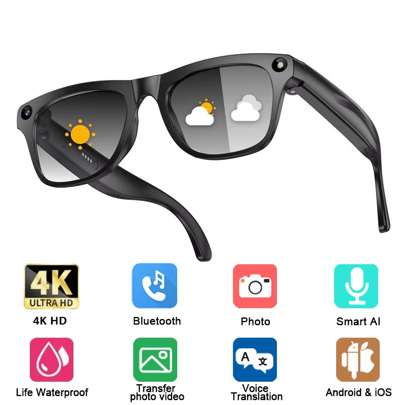 2026 New 4K HD AI Smart Glasses Photochromic Multifunction Camera Bluetooth Calling Music Player Voice Assistant Translation Glasses