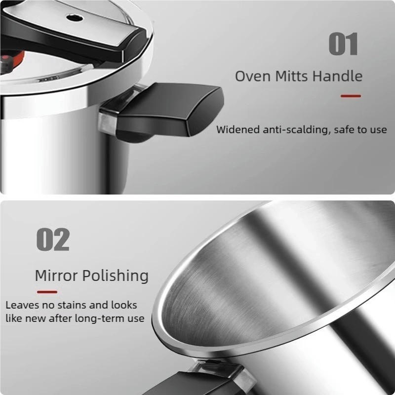 【High Pressure Cooking】: This 304 stainless steel pressure cooker can quickly cooking food